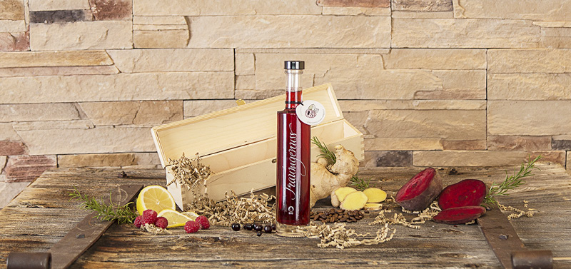 Ein genussreiches Geschenk, das Freude macht: Eine Flasche Traumgenuss mit Essenz nach Wahl, edel verpackt in einer Holzschachtel. Überraschen Sie Ihre Liebsten mit einem wahren Geschmackserlebnis für Nase und Gaumen. Unsere Geschenksets sind auch als Mitarbeitergeschenk oder Firmenpräsent sehr beliebt.